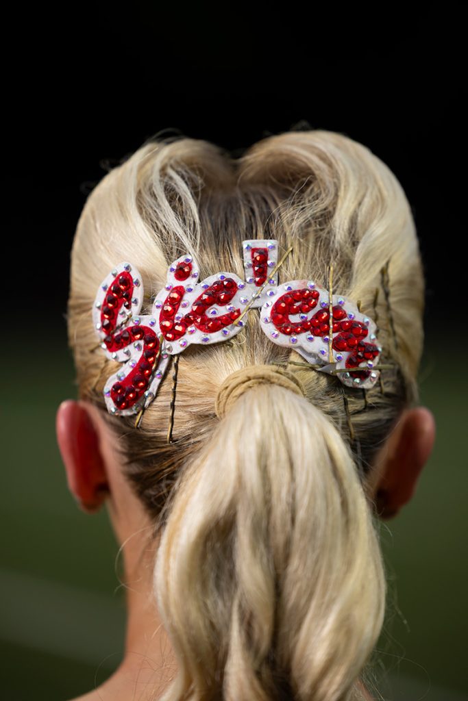“It’s a super fun way to get Georgia Dawgs excited and hyped up for the game,” says feature twirler Allyson Duda. “I love looking out onto the sea of fans in red and black. It feels like a dream.”